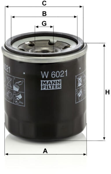Olajszűrő Mann Filter W 6021 Gyakori felhasználása a szűrőnek CHEVROLET EUROPE / DAEWOO (GM) Aveo, Cobalt, Gentra (UZ-DAEWOO), Spark. RAVON Gentra, Nexia R3, R2, R4